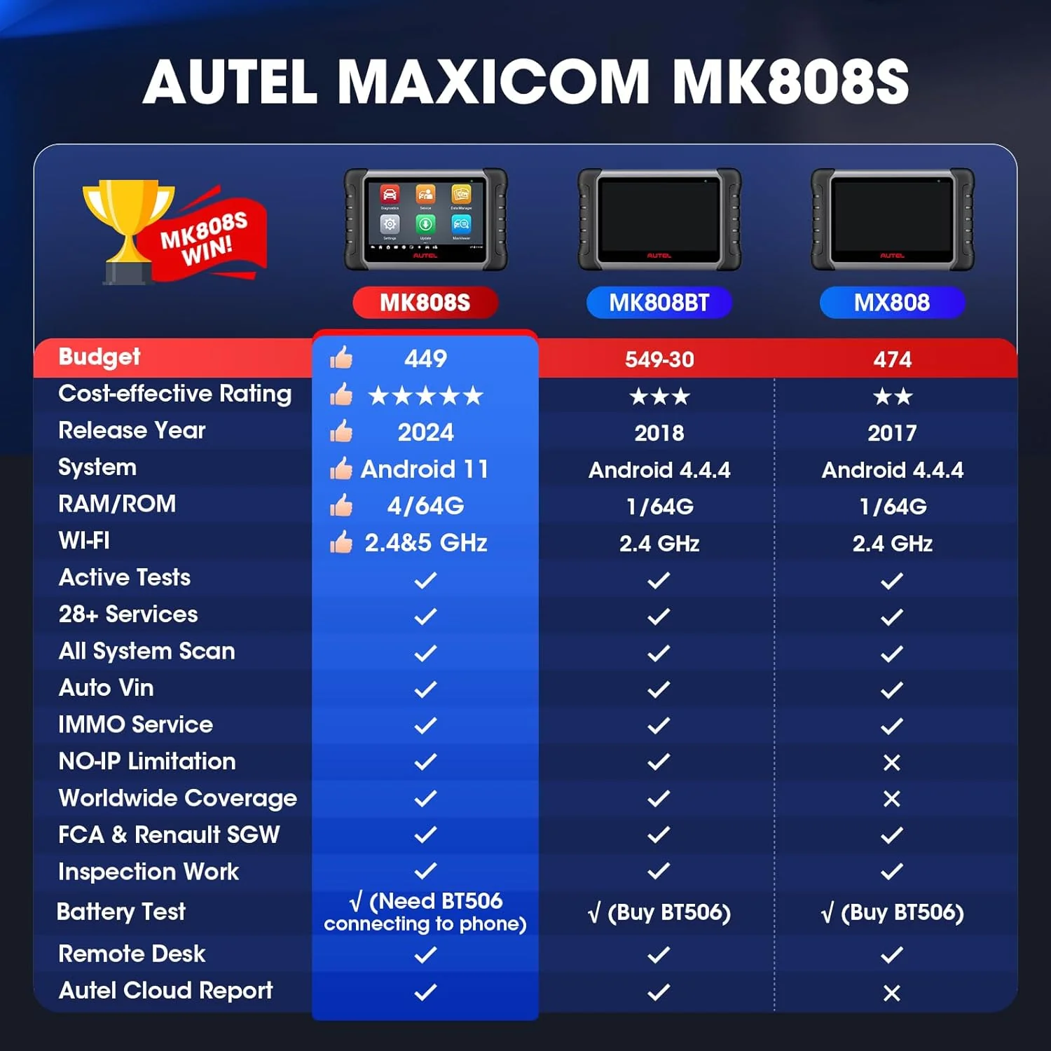 • 2024 Bidirectional Tool as MK808BT Pro MX808S M808Z, Function as MaxiCheck MX900, Active Test, All System Diagnose, Injector Coding.